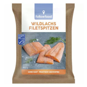Der pazifische Wildlachs gehört zu den bekanntesten und beliebtesten Speisefischen und lässt sich vielseitig einsetzen – egal ob gekocht, gebraten, gegrillt oder geräuchert. In den followfood Wildlachs Filetspitzen kommt der sogenannte „Buckellachs“ (Oncorhynchus gorbuscha). Dieser lebt im Nordwestpazifik und Nordostpazifik, wo sein Bestand gesund ist. Gefangen wird er mit Reusen, Fallen und Strandwaden. Diese sind sehr selektiv, sodass kaum Beifang entsteht. Außerdem haben sie kaum Kontakt mit dem Boden, wodurch gefährdete Arten und das restliche Ökosystem geschont werden. Wildlachse sind anadrom, was bedeutet, dass sie in Süßgewässern wie Flüssen und Seen geboren werden und nach der Geburt in den Ozean schwimmen. Dort legen sie große Entfernungen zurück, wodurch ihr Fleisch sehr fest mit einer zarten Fettfaserung ist. Zur Fortpflanzung wandern Wildlachse zu ihrem genauen Geburtsort zurück.