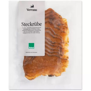 Verrano – gereiftes und geräuchertes Wurzelgemüse, hauchdünn aufgeschnitten für vollen Genuss. Ob als Brotbelag, zum Kochen oder als Teil einer Snackplatte, Verrano ist vielseitig einsetzbar und überrascht mit Aromen von Rettich und Senf. Die leichte Bitternote wird vom Rauch abgerundet.